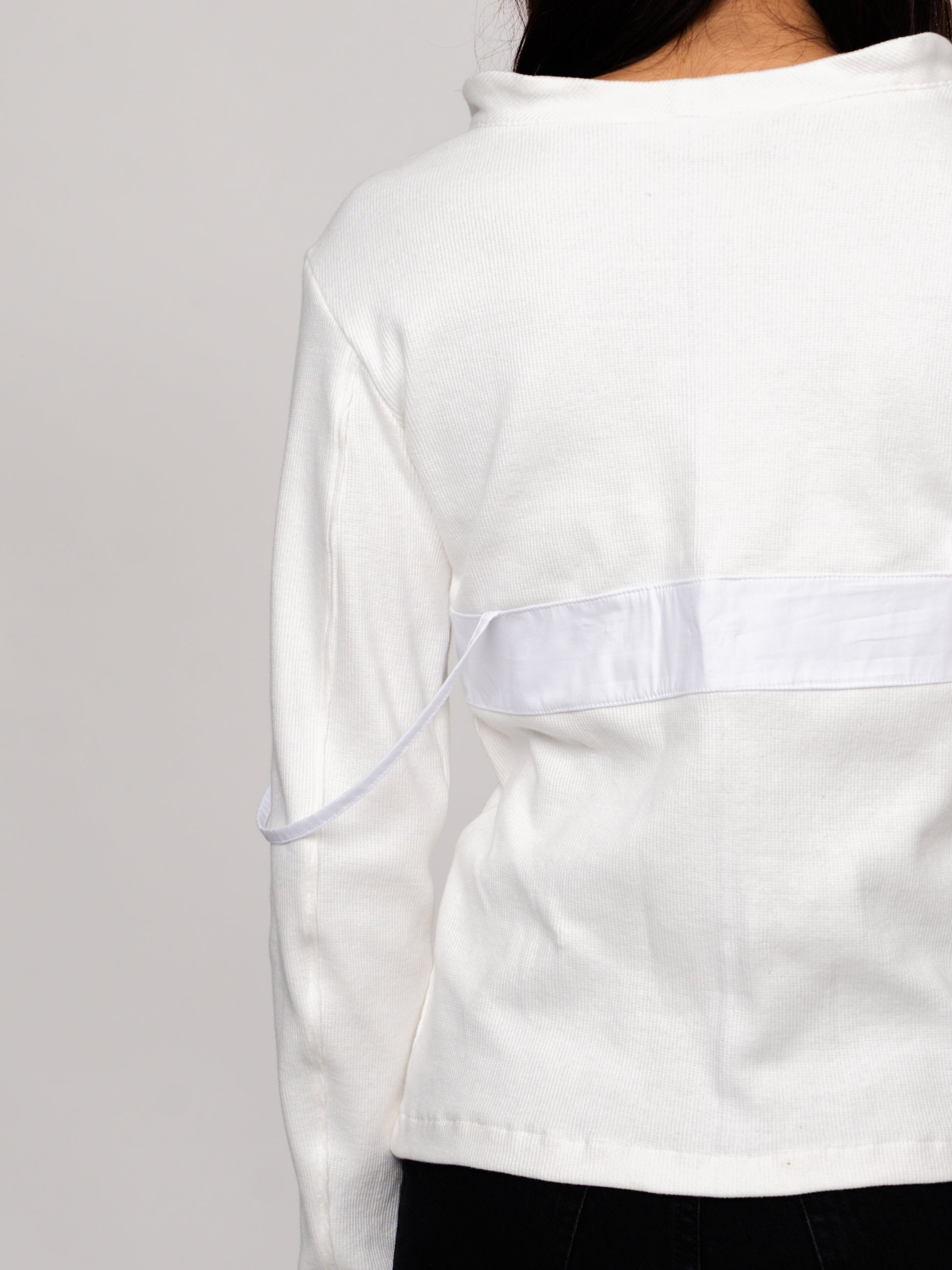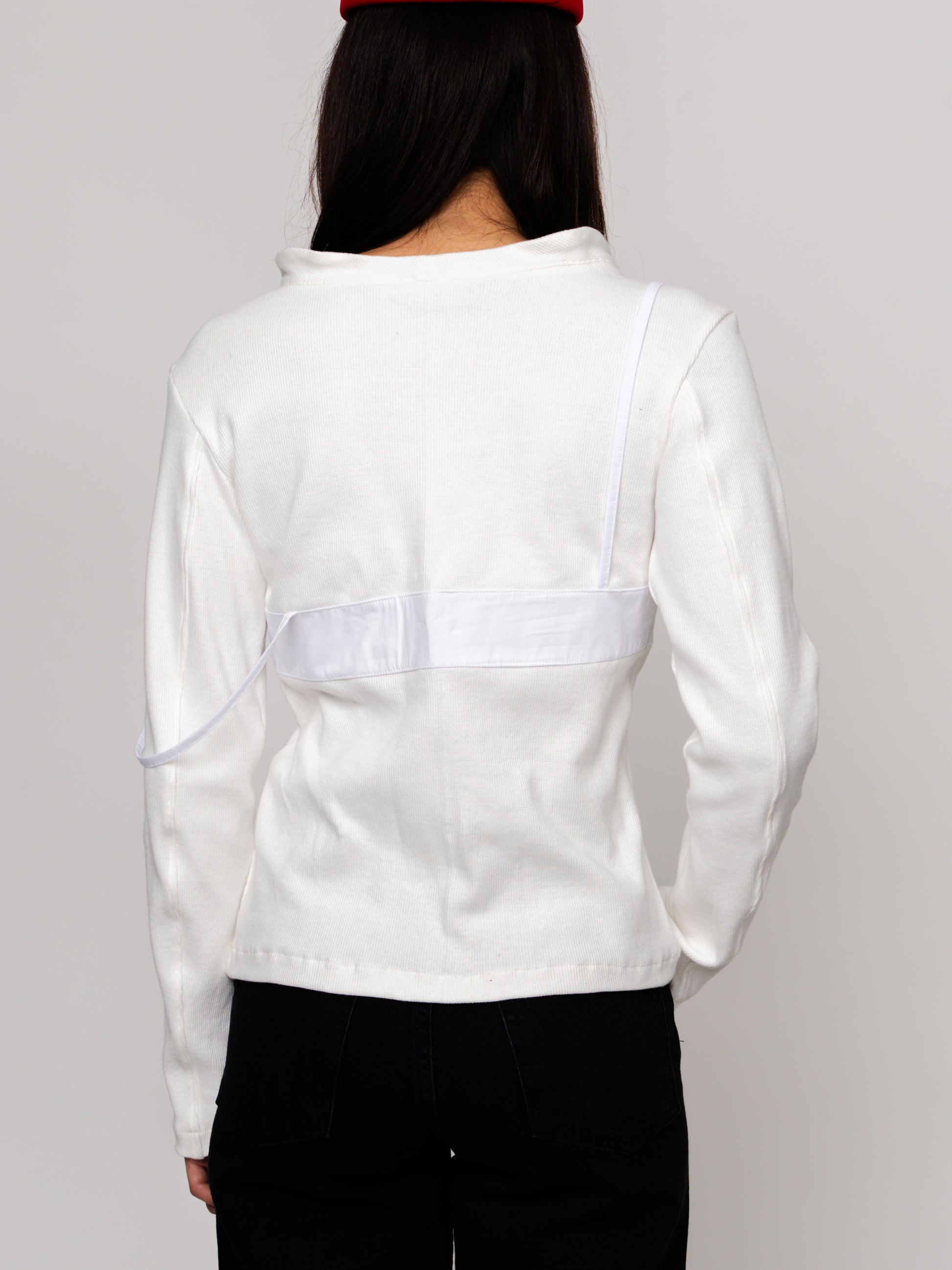 White V-Neck Buttoned Cardigan with Bust Detail - 100% Cotton
